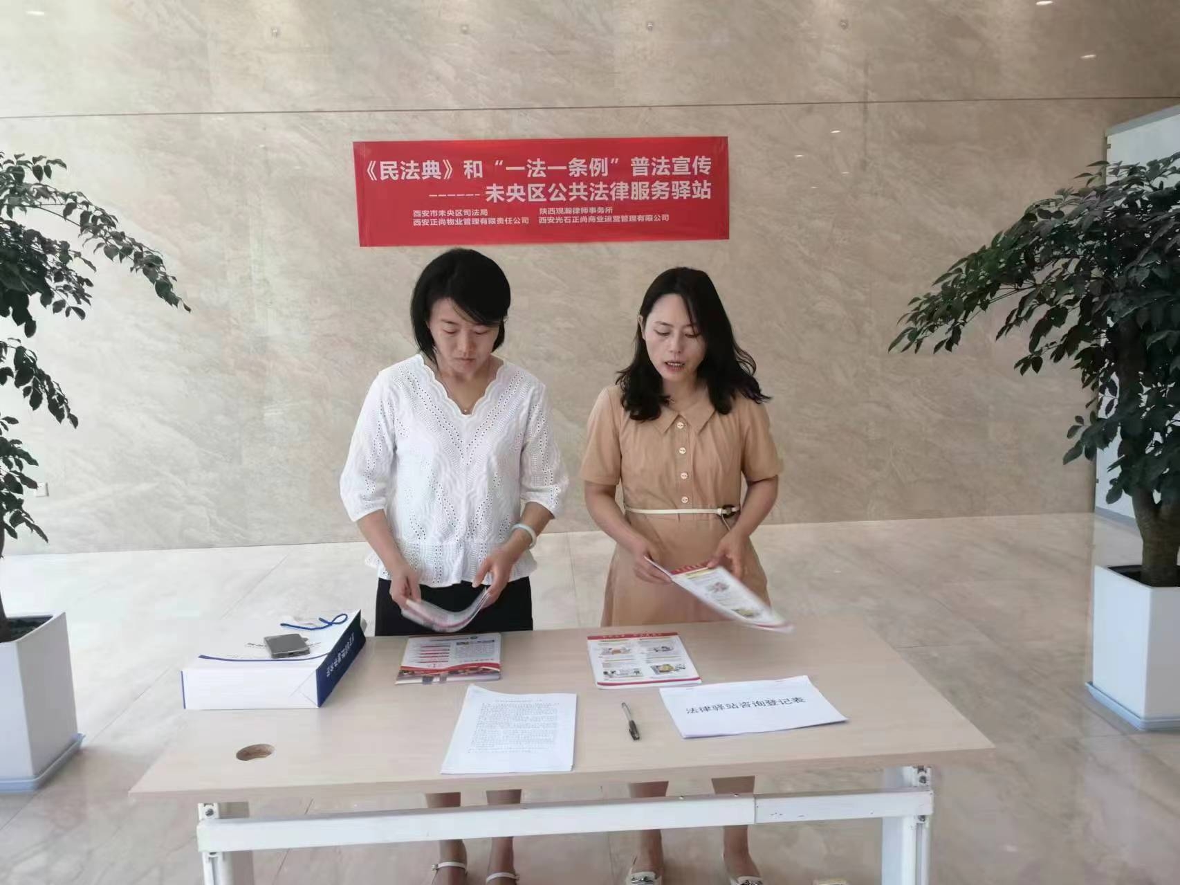 2024年5月17日,按照未央区司法局的安排,陕西观瀚律师事务所在正尚国际金融广场写字楼及大融城广场开展《民法典》及“一法一条例”普法宣传。